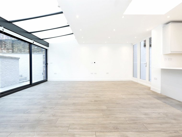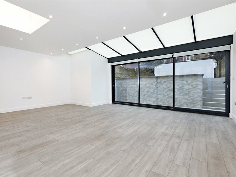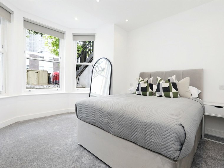 The property features a spacious open-plan reception and dining area with elegant wood flooring, high ceilings, and bi-fold doors leading directly onto a beautifully landscaped garden — perfect for entertaining or relaxing outdoors. The modern kitchen is fully fitted with premium integrated appliances and sleek cabinetry. The principal bedroom benefits from an elegant en-suite shower room, while two further double bedrooms provide ample space for family or guests. A second high-spec bathroom completes the accommodation. Ideally located just moments from Swiss Cottage Underground Station and within walking distance of Belsize Park and Primrose Hill, the apartment offers easy access to an excellent selection of cafés, restaurants, and green spaces. Resident permit parking is available. Key Features: 3 double bedrooms, 2 bathrooms Over 1,170 sq. ft. of internal space Large private garden High-quality refurbishment throughout Modern open-plan kitchen Ground floor of a charming period building Moments from Swiss Cottage & Belsize Park Permit parking available.