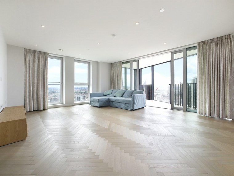 An impressive thirty fifth floor contemporary apartment with stunning far reaching views comprising entrance hall with utility/storage cupboard, generous reception room with herringbone engineered oak flooring, dining area, door to winter garden providing stunning views towards Westminster, Canary Wharf and Battersea, open plan fitted Häcker kitchen with crystal anthracite dark work tops, Siemens appliances with wine cooler, master bedroom suite with fitted wardrobes and en-suite shower room, double guest bedroom two and family bathroom with silver Verso Italian porcelain wall and floor tiles. The apartment has the benefit of floor to ceiling windows, under floor heating, high specification interior and a wealth of excellent communal facilities including 24hr concierge, residents lounge, screening room, landscaped gardens, clubroom and state of the art gym. London Bridge, Southbank, Waterloo and Borough Market are located close by.