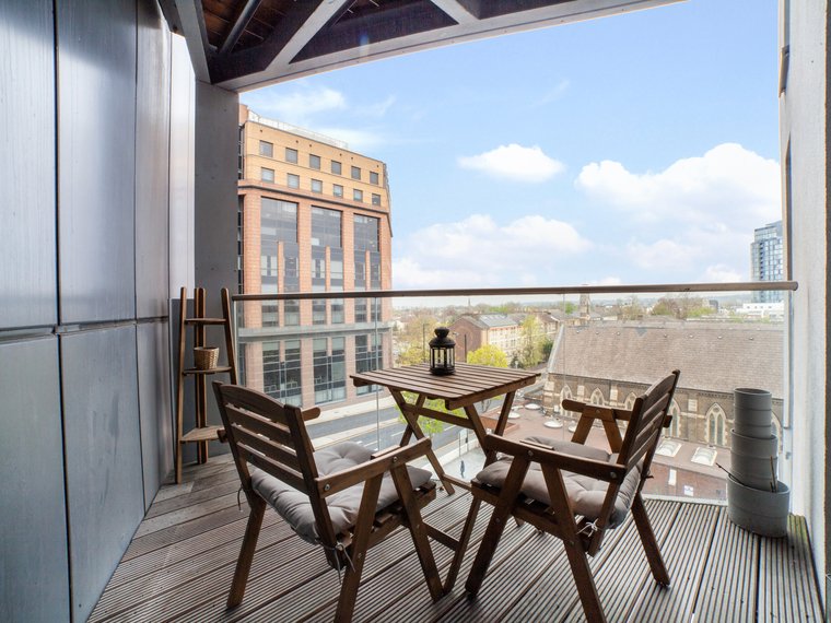 This stylish modern apartment comprises entrance hall with storage cupboard, reception room with dining area and door leading to private balcony providing pleasant elevated views, contemporary open plan fitted kitchen with work tops and integrated appliances, double bedroom with fitted wardrobes and bathroom. This well presented apartment is located within modern development with 24hr concierge and access to residents gym. Excellent transport links, leisure facilities and shopping are all moments away.