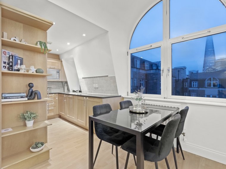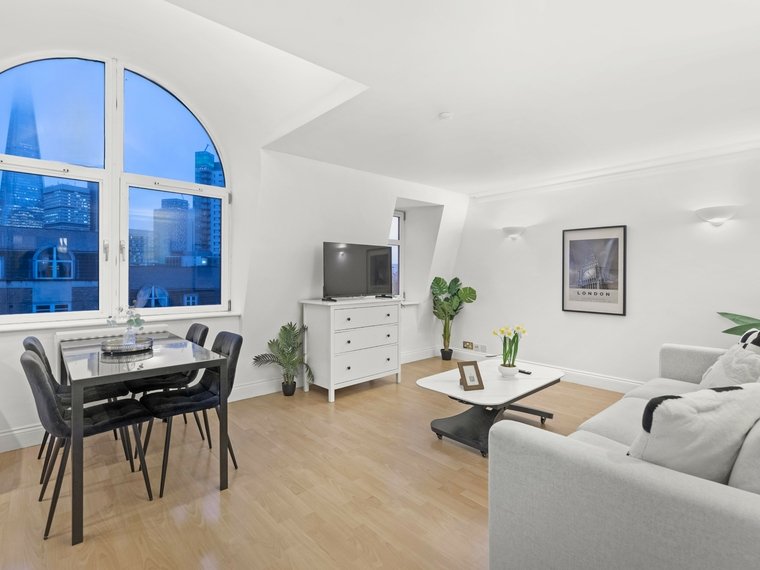 Occupying part of the top floor, this immaculate recently redecorated modern apartment comprises entrance hall with utility/storage cupboard, impressive reception room with feature windows providing superb views towards the Glass Shard, semi-open plan fitted kitchen with stone work tops and integrated appliances, master bedroom with London Eye Views, fitted wardrobes and en-suite bathroom, guest bedroom two with en-suite shower room, bedroom three and family bathroom. The apartment has the benefit of lift access, two secure allocated parking spaces and is located moments from London Bridge, Borough Market, Guys Hospital, Bankside and the City.