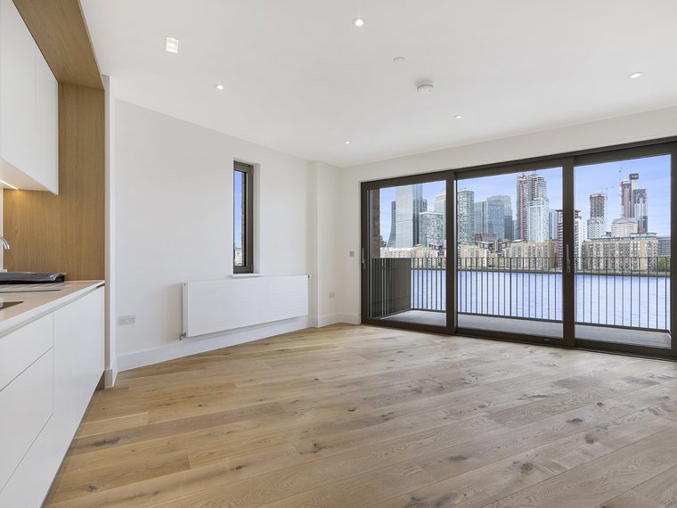 This stylish dual aspect apartment comprises entrance hall with storage cupboard, impressive reception room with doors leading to generous private balcony providing fantastic views towards the river Thames and Canary Wharf, stylish open plan fitted kitchen with stone work tops and integrated appliances, double bedroom with fitted wardrobes and bathroom. Benefits include wood flooring, a high specification interior and convenient access to Thames Path, Stave Hill Ecological Park, Surrey Quays Shopping Centre, Canada Water [Jubilee and Overground] and Rotherhithe Pier.