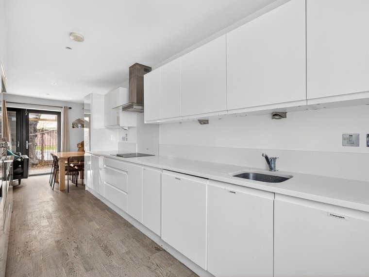 Located within a residential street, this modern freehold house comprises entrance hall with storage cupboard, reception room with dining area and doors leading to private rear garden, stylish fitted kitchen with work tops and integrated appliances, downstairs shower/WC, stairs lead to first floor level with landing and storage, master bedroom, two further bedrooms and family bathroom. The property benefits from a high specification interior, side access and off road parking to the front. The house is chain free and is considered perfectly located for convenient access to South Bermondsey and Surrey Quays stations and Southwark Park.
